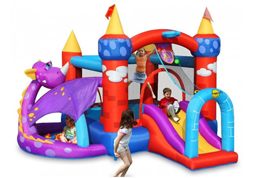 Die märchenhafte Hüpfburg im Design "Drachen Schloss" hat eine Grundfläche von 12,25 m², ist neu und originalverpackt. Diese Hüpfburg ist ein richtiger Blickfang durch Ihr tolles farbenprächtiges Äußere. Der tolle Drache wird von allen Kindern sehr geliebt. Aber die Hüpfburg hat außer einem tollen Aussehen noch viel mehr zu Bieten. Hier kann man nicht nur hüpfen, sondern rutschen, Basketballspielen, im Bällepool plantschen oder mit dem Wurfspiel die Geschicklichkeit testen.